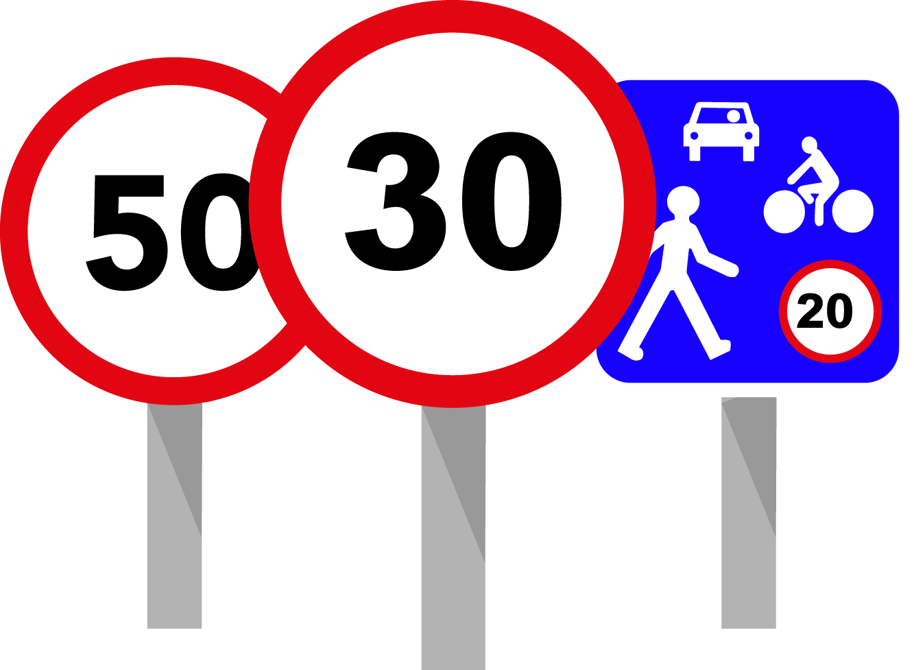 Comply with speed limits, also in areas limited to 30km/h or less. Adapt your speed to the intersections, paying particular attention to pedestrians and cyclists.