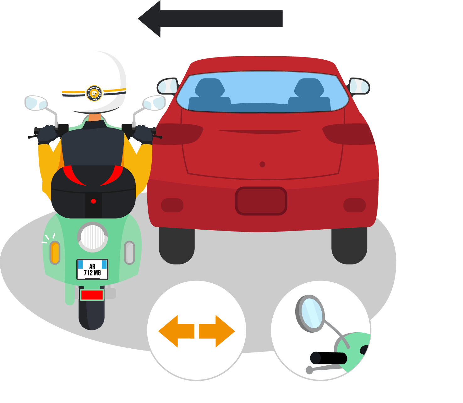 Keep your distance from the vehicle in front of you: at 50km/h, you would need more than 20m to stop. Don't get too close to parked vehicles, a door could open quickly. Be careful and anticipate the movements of other road users.